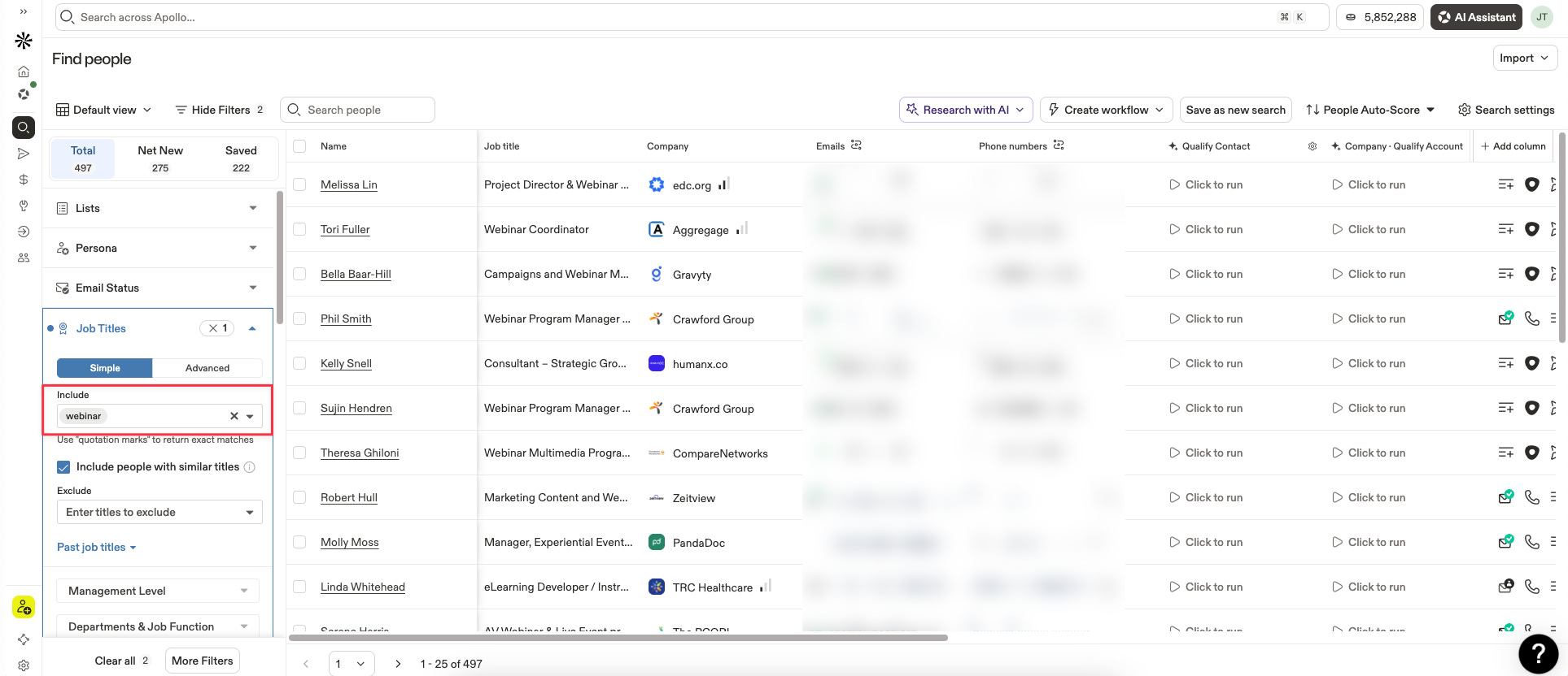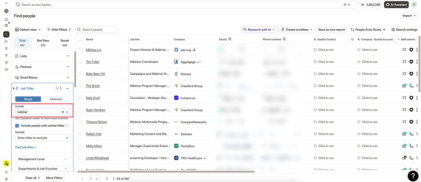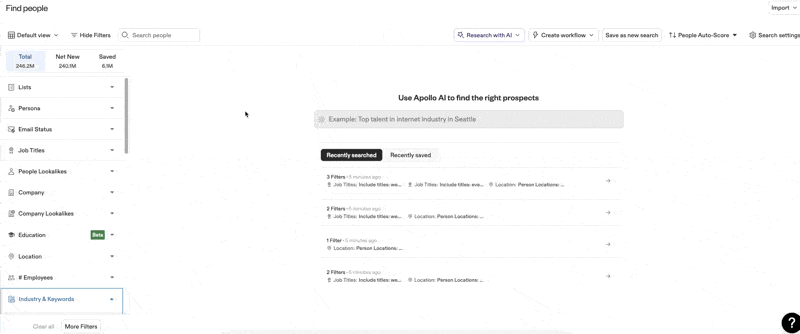 If your keyword lives anywhere else, Apollo can’t find the person, even if they’re a perfect fit.